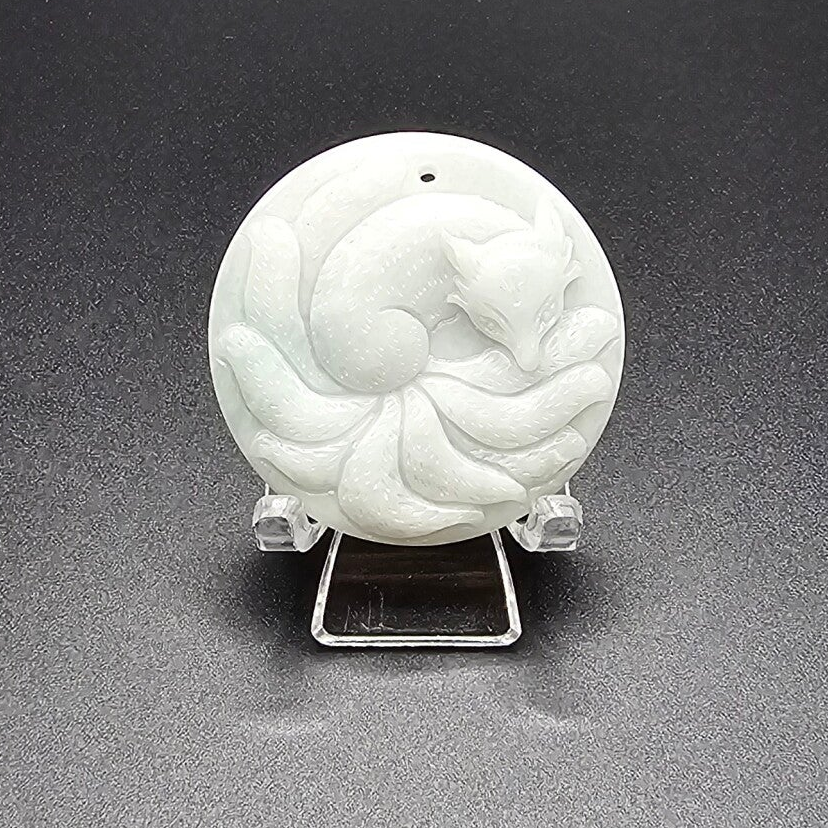 Fantastische, 9-tail vos jadeïet pendants. Goede kwaliteit. Jadeïet kan smaragdgroen tot lichtgroen, geelachtig, bruinachtig en paars van kleur zijn. De steen is doorschijnend tot opaak met een glasachtige tot zijdeglans.