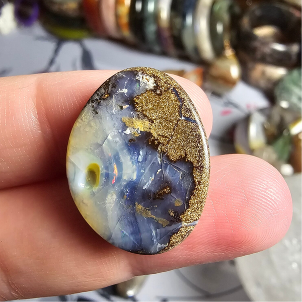 Boulder opaal is ijzerhoudende zandsteen / klei ijzersteen met opaal erin. Herkomst Australië. In het zonlicht komen deze geweldige stenen het meest tot zijn recht!
