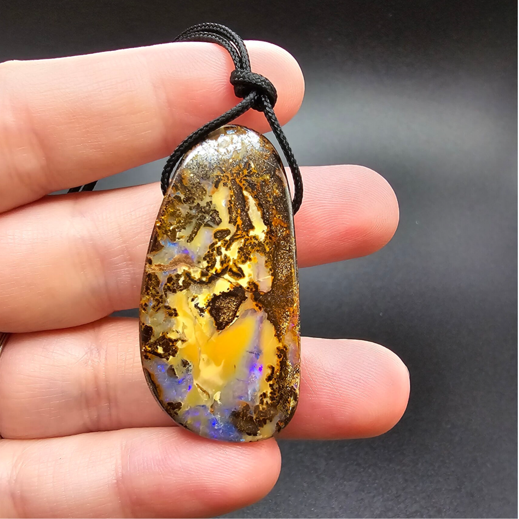 Deze opaal heeft gat voor een ketting. Koord wordt meegeleverd.