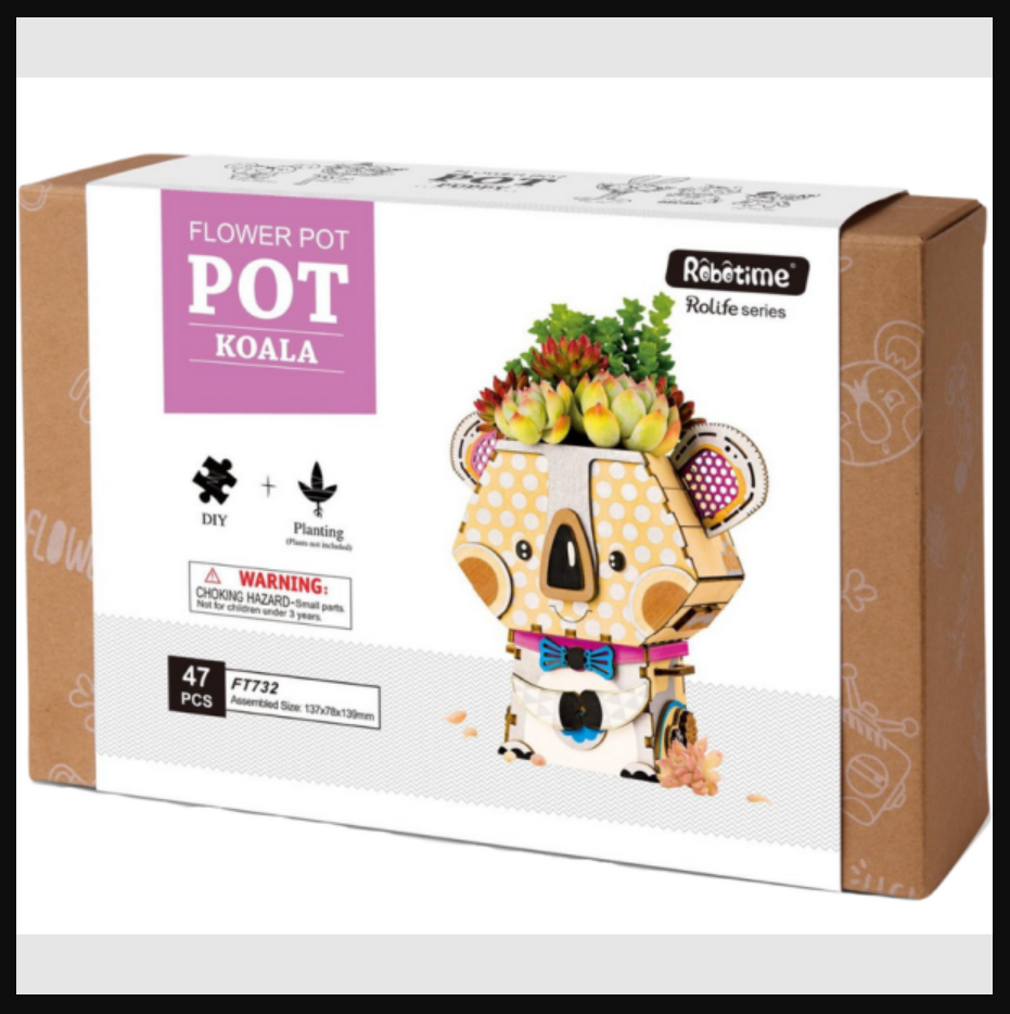 Robotime - DIY Flower Pot Koala is a lovely, cute little koala. With enormous details (3D Puzzle).