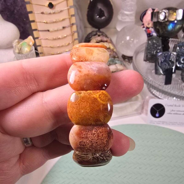 Soort edelsteen: Coral Agate/Fossiel Koraal > commerciele naam Coral Jade.