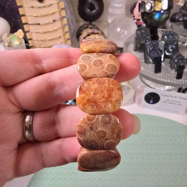 Soort edelsteen: Coral Agate/Fossiel Koraal > commerciele naam Coral Jade.