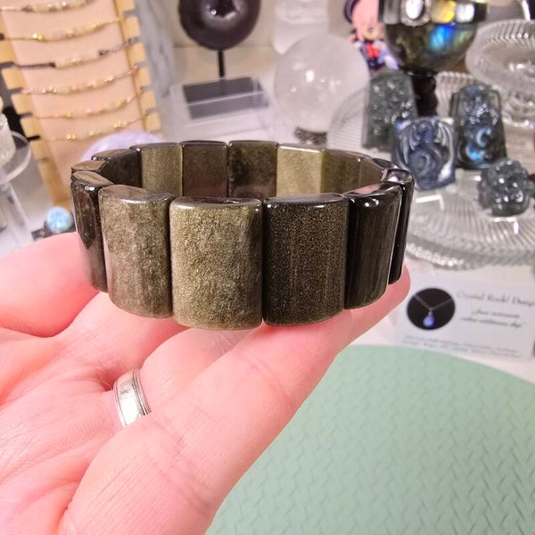 Fantastische, gouden obsidiaan armband. Met een geweldige bling. Goede kwaliteit. Geweldig om jezelf of een geliefde kado te doen.
