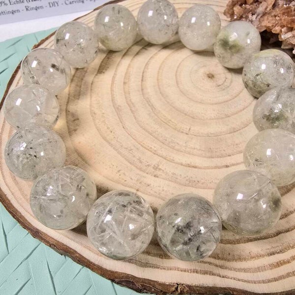 Wat een geweldige kraal! Zilver rutiel met mica inclusies. Super mooi en zeldzaam. Een echt pronkstuk om je pols!